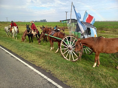 y esperan llegar a Luján el próximo 5 de mayo, justamente día del gaucho peregrino, donde