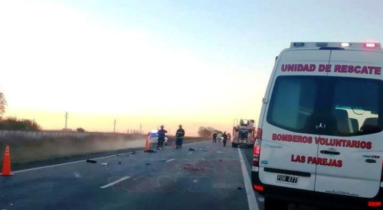 Un amplio despliegue de Bomberos Voluntarios de Las Parejas, Policía y varias ambulancias se dieron cita esta tarde en Ruta 178, en la salida de nuestra ciudad, a pocos metros de la primera curva camino a Las Rosas. Un fuerte accidente dejó como saldo a dos personas fallecidas. Una es Sofía Gallardo de Montes de Oca, quien viajaba en una moto junto a quien sería su pareja,Franco Cárdenas, el cual fue derivado de urgencia a Rosario. Ella habría fallecido en la ambulancia, camino al hospital de Las Parejas. Y el otro fallecido, Jose Farias oriundo de María Susana.