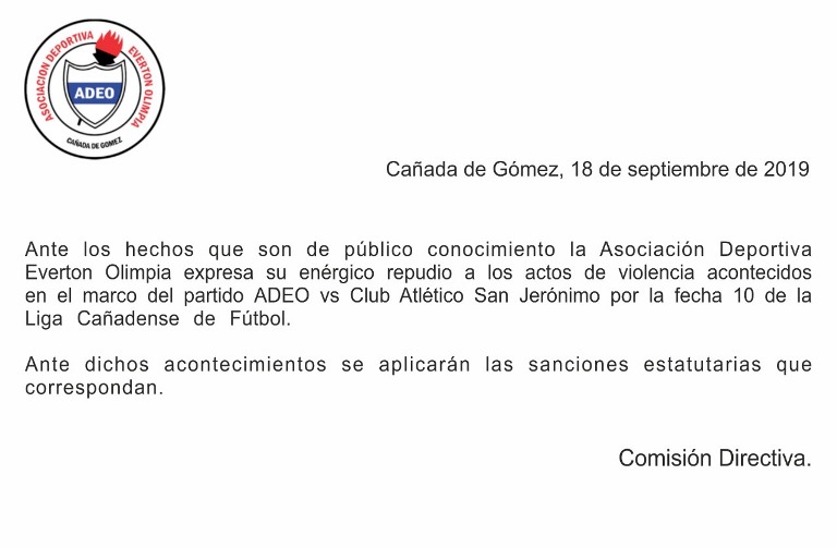 ADEO. Comunicado oficial por Hechos de Violencia. Web: www.F10WebMedia.com septiembre 19, 2019 by Diario Armstrong 0 comments 4597 viewson Deliberando, Deportes, Diario Armstrong y Región, Locales, Región Share this post Facebook Twitter Google plus Pinterest Linkedin Mail this article Print this article Tags: ADEO. Comunicado oficial por Hechos de Violencia. Next: Jornada sobre “Sustentabilidad en la gestión comunal y cambio climático” Previous: Armstrong. Concierto del Ensamble Folclórico.