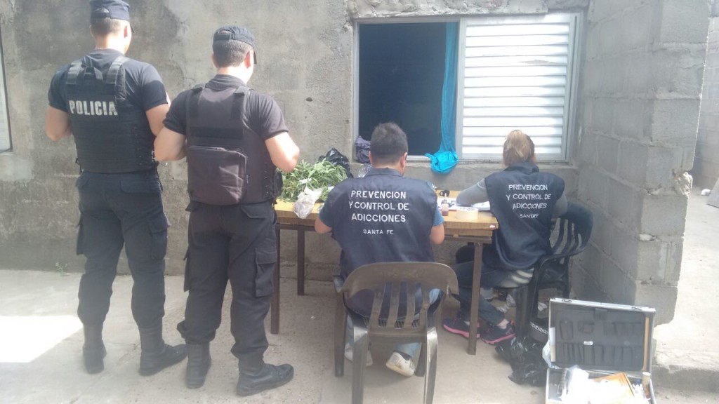 Esta mañana la Dirección General de Prevención de Control de Adicciones de la Policía de la Provincia de Santa Fe (DGPCA), realizó un allanamiento en la ciudad de Armstrong y detuvo a dos personas.
