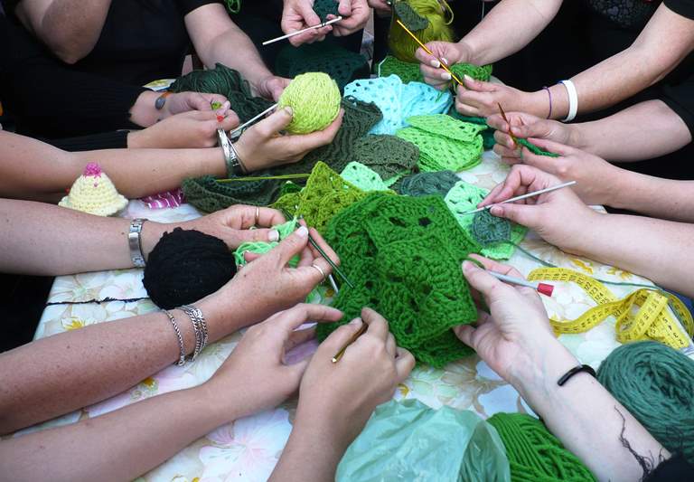 tejedoras-La Municipalidad de Armstrong auspicia e invita a la 1° jornada solidaria de tejido que se realizará el domingo 16 de julio a partir de las 14:30 hs. en Plaza San Martín y, en caso de lluvia, se trasladará al Museo Histórico Municipal.