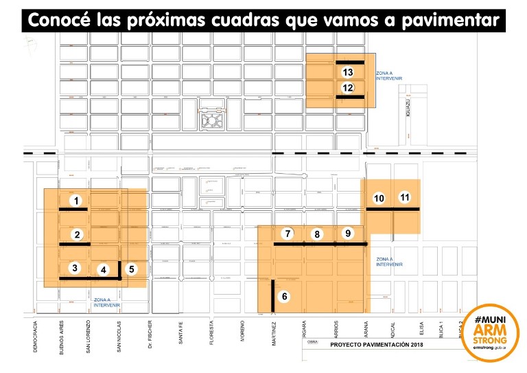 El proyecto local cubre calles Roldán y San Martín entre Paraguay y California, Bell Ville y Delfo Cabrera desde San Lorenzo hasta Buenos Aires, San Nicolás entre Ecuador y Villa María, Villa María desde San Nicolás hasta Buenos Aires, Bell Ville entre Martínez y Paraná, Delfo Cabrera desde Paraná hasta Elisa, y Martínez desde Villa María hasta Schaer.