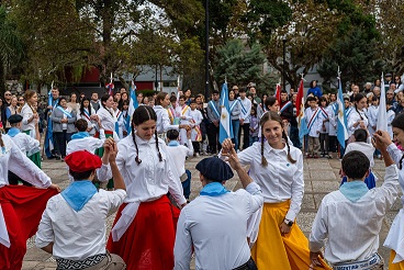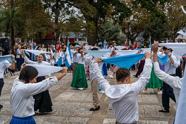 Los niños del nivel inicial, sección 5 años B interpretaron un carnavalito con vestuario y accesorios celestes, y los estudiantes de 5° año bailaron nuestra danza nacional “El Pericón” con toda la frescura que