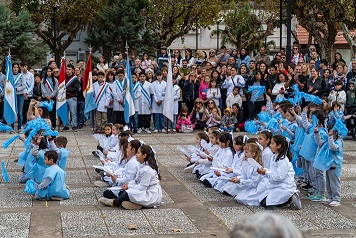 Luego, los alumnos de 3° grado del nivel primario homenajearon a la Patria interpretando la zamba