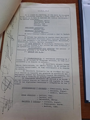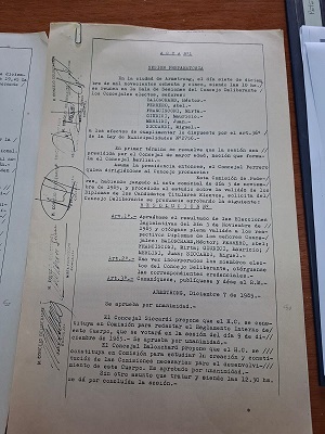Entre el 7 de diciembre y el 11 de Diciembre de 1985 se realizaron la reunión preparatoria del Concejo. La designación de autoridades del mismo, la designación de Beatriz Ferreyra como Secretaria y segun el acta n° 3 del Concejo el 11 de Diciembre se le toma Juramento al Primer Intendente de la Ciudad,Dr Ricardo JA Fischer.