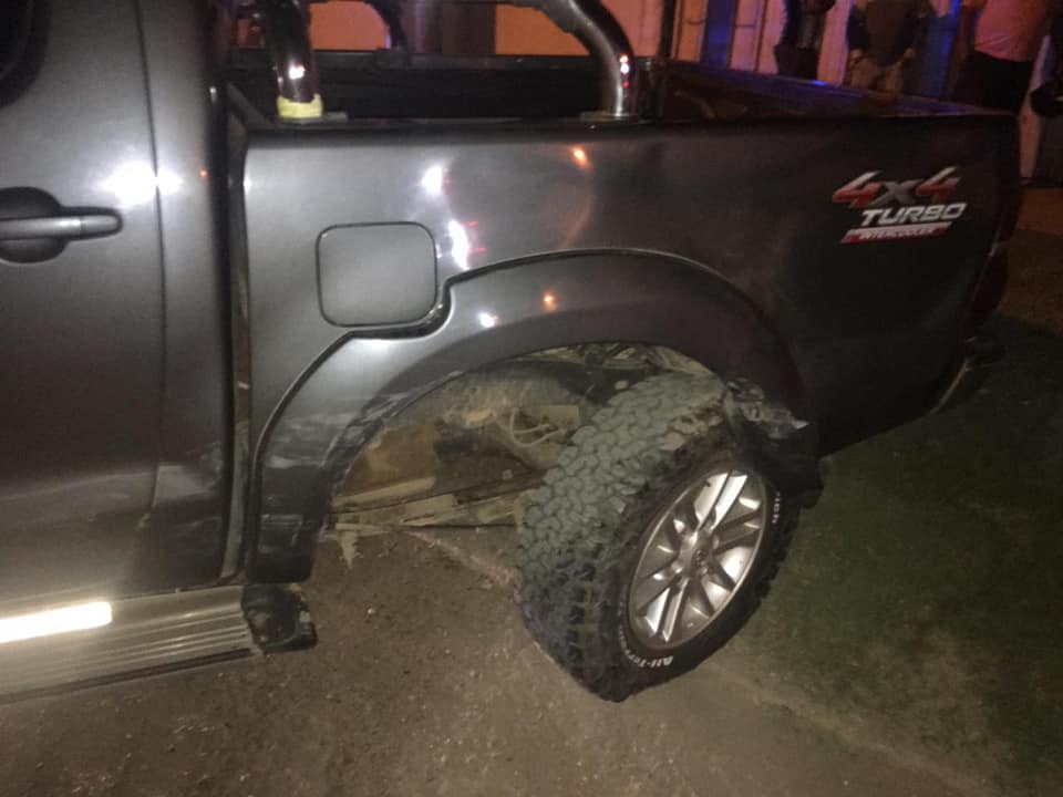 Los ocupantes, sin ninguna lesión fueron trasladados a la comisaría local para hacer denuncias pertinentes.