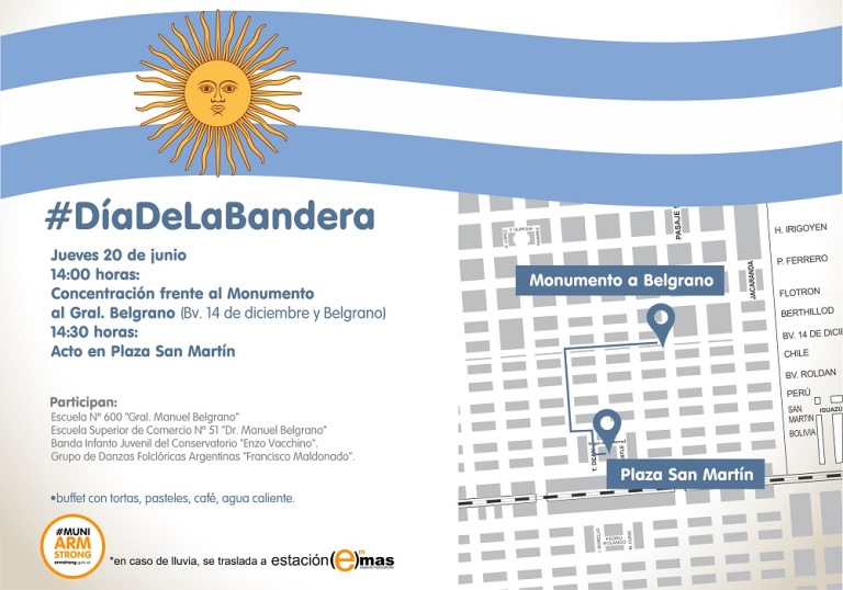 La Municipalidad de Armstrong invita a toda la ciudadanía a los festejos por el Día de la Bandera que se realizarán el día jueves 20 de junio desde las 14 hs. con la participación de las Escuelas N° 51 “Dr. Manuel Belgrano” y N° 600 “General Manuel Belgrano”.