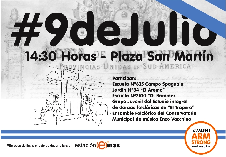 La Municipalidad de Armstrong invita a toda la comunidad a participar del acto por un nuevo aniversario de la Independencia de nuestro país, el domingo 9 de julio a las 14:30 hs. en Plaza San Martín.