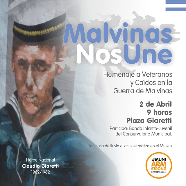 La Municipalidad de Armstrong invita a participar del acto Homenaje en el Dia del  Veterano  y de los Caídos en la Guerra de  Malvinas.