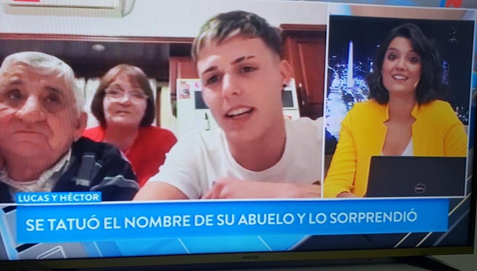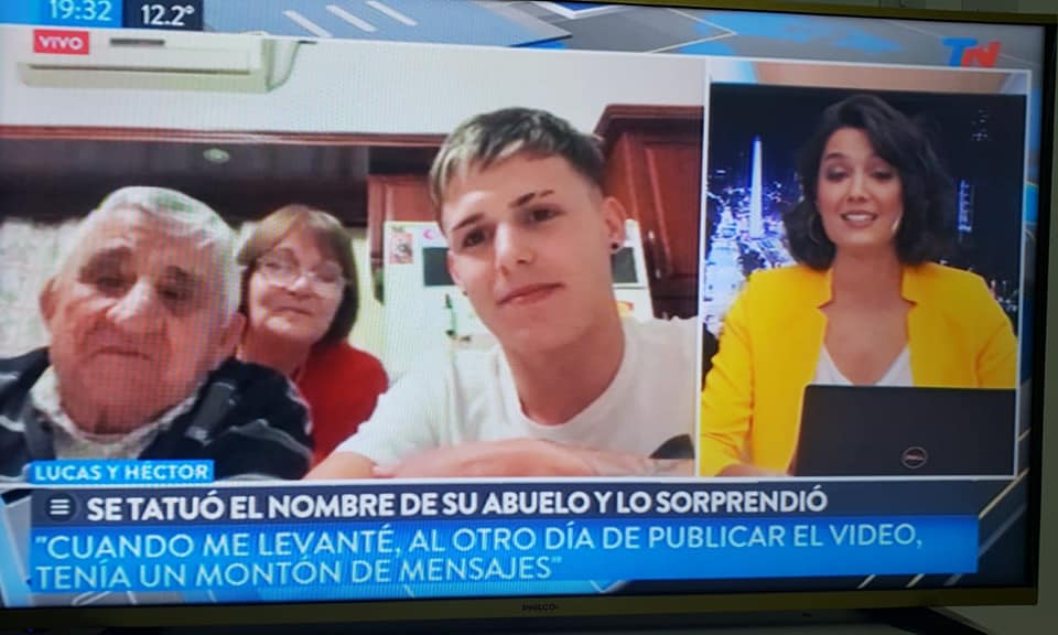 En la tardecita del domingo, fueron entrevistados por TN, el joven Lucas Ricciotti, de la localidad de Armstrong, quien se hizo un tatuaje con el nombre de su abuelo Hector, acompaño en la conferencia la abuela “Eva” quien estaba al tanto de la sorpresa.