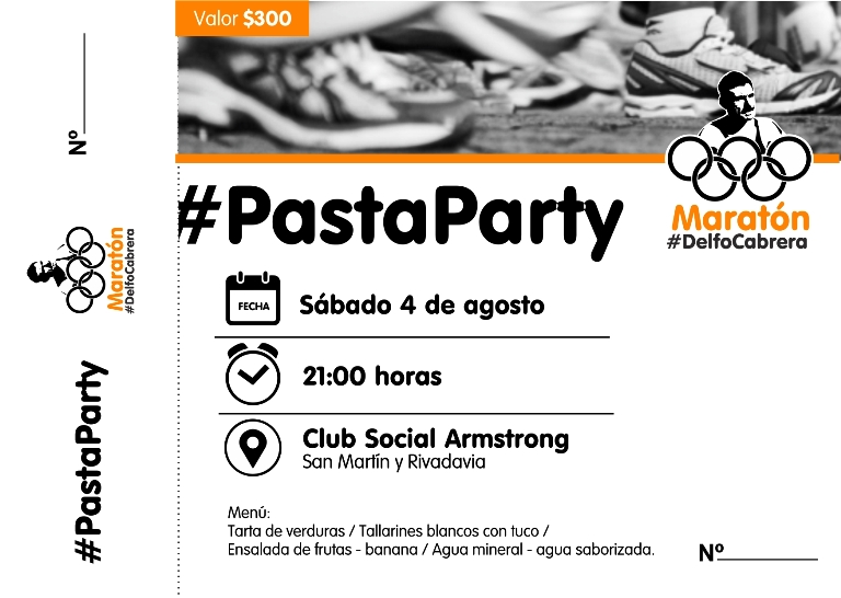 cena maratonistas 2018 ok (1)En el marco de la 16° edición del Maratón Homenaje a Delfo Cabrera, se realizará una cena “Pasta Party” para todos aquellos competidores de la ciudad y para quienes lleguen desde distintos puntos del país durante los días previos.