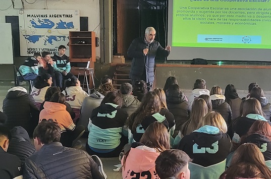 El pasado miércoles 9 de agosto, la Cooperativa Agropecuaria de Armstrong en el marco de su 70° aniversario, brindó una charla destinada a alumnos de 5to año de las Escuelas N° 51 Dr. Manuel Belgrano y N° 33 Dr. Mariano Moreno. La apertura estuvo a cargo del Pte. de la institución Sr. Raúl Faraoni, quien presentó al disertante Lic. Eduardo Fontenla.