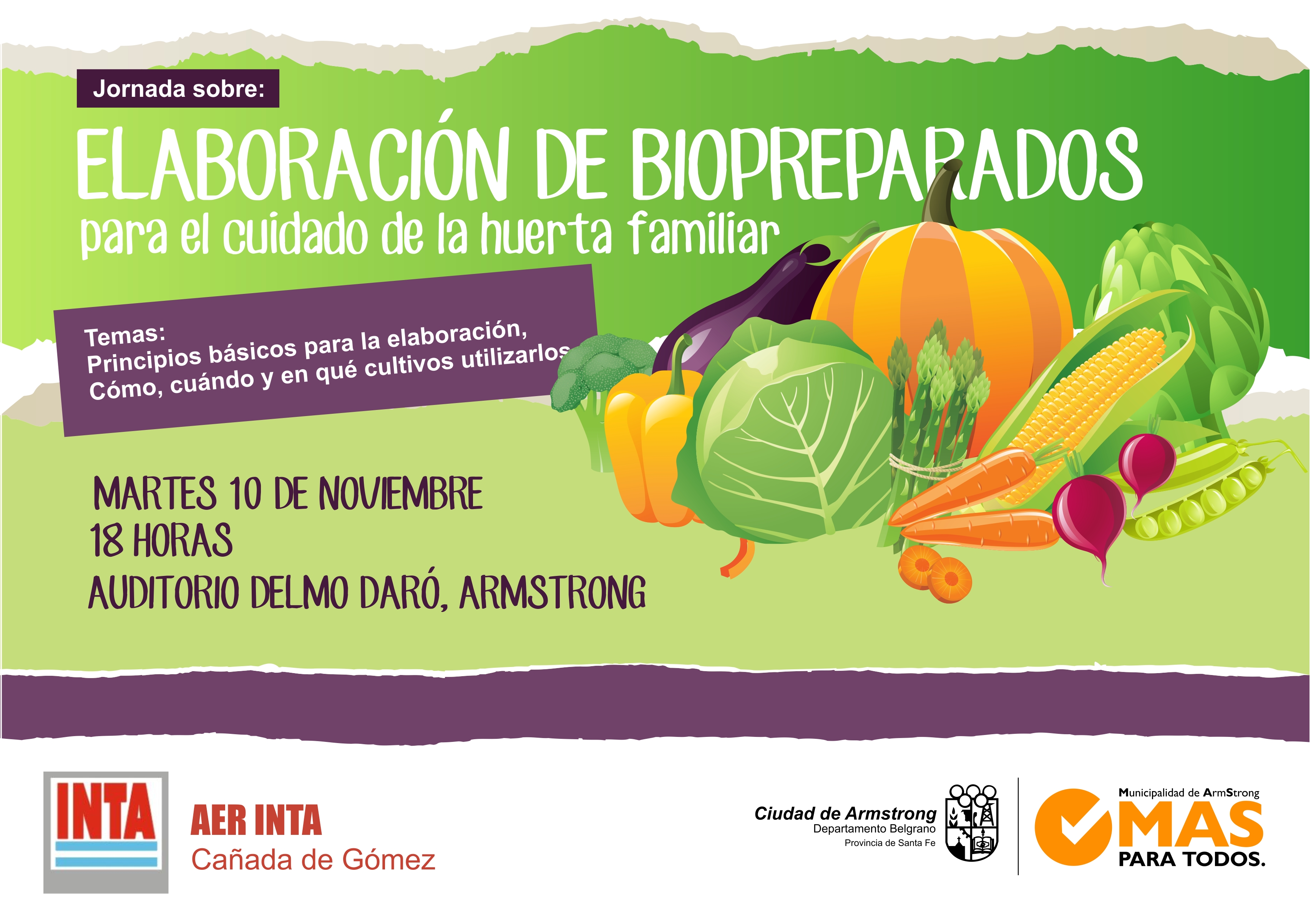 La Municipalidad de Armstrong junto a la Agencia de Extensión Rural del INTA Cañada de Gómez invitan a la charla sobre elaboración de biopreparados para el cuidado de la huerta familiar” que se realizará el día martes 10 de noviembre a las 18 hs. en el salón auditorio Delmo Daro.