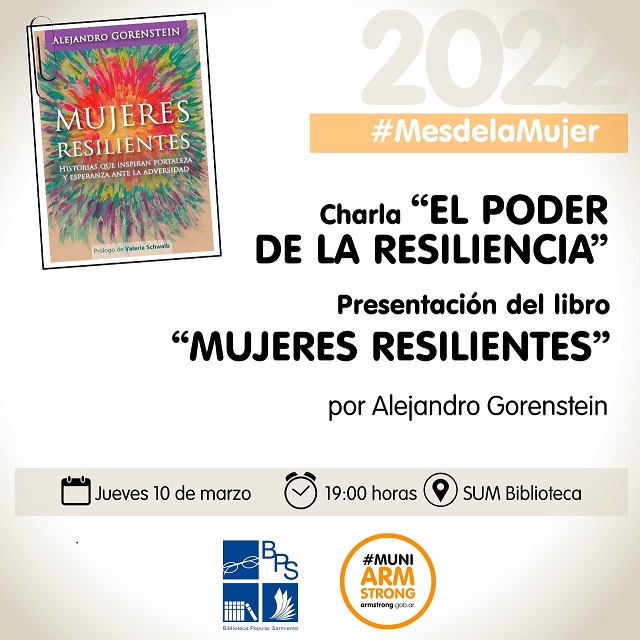 Se trata de la charla “El Poder de la Resiliencia” y la presentación del libro “Mujeres Resilientes” a cargo del mismo autor del libro, el periodista y escritor Alejandro Gorenstein.