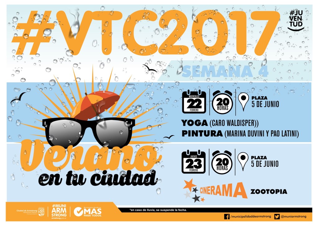 La Municipalidad de Armstrong a través del Departamento de Juventud invita a grandes y chicos a disfrutar de la cuarta y última semana del ciclo “Verano en tu Ciudad” con actividades pensadas para que toda la familia comparta momentos de mucha diversión.