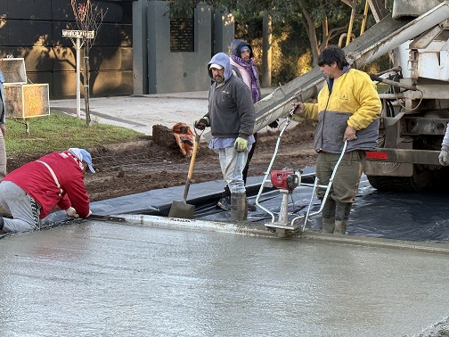 Los trabajos incluyen la preparación del terreno, colocación de moldes y una losa de hormigón de