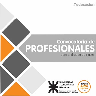La Municipalidad de Armstrong y UTN abren la convocatoria de profesionales para el dictado de clases, Contador, Psicólogo, Abogado, Médico Laboral, Lic. en Recursos Humanos, Lic. en Estadística, Lic. en Higiene y Seguridad, Lic. en Administración de Empresas, Profesor de Química, Física y Matemáticas, Profesor de Inglés o Traductor, Ing. Industrial, Civil, Mecánico, Eléctrico, Químico y Agrónomo. Analista e Ingeniero en Sistemas.
