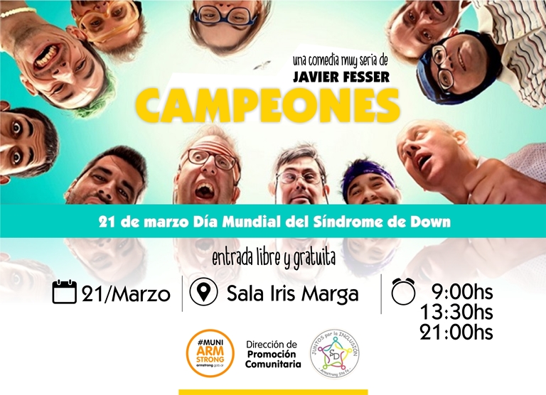 campeones dia mundial del sindrome de down (1)La Dirección de Promoción Comunitaria de la Municipalidad de Armstrong y el Grupo Juntos por la Inclusión invitan a la proyección de la película “Campeones”, actividad que se realiza para concientizar y sensibilizar a la población sobre el tema inclusión y discapacidad.