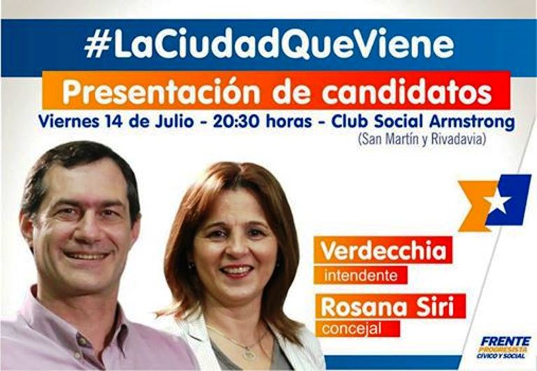 Armstrong. El oficialismo presentara a sus candidatos. El día viernes 14 de julio, a las 20.30 hs en el Club Social, el oficialismo presentara su lista de candidatos quienes participaran en las próximas elecciones PASO a realizarse el 13 de agosto. Web: www.F10WebMedia.com julio 14, 2017 by Diario Armstrong 0 comments 1473 viewson Deliberando, Diario Armstrong y Región, Locales, Política, Región Share this post Facebook Twitter Google plus Pinterest Linkedin Mail this article Print this article Tags: Armstrong. El oficialismo presentara a sus candidatos. Next: Rosario. Arrasador incendio en galpón de Monticas en zona noroeste. Previous: Ganadores de la Tómbola Solidaria Organizada por la Asociación de Bomberos.