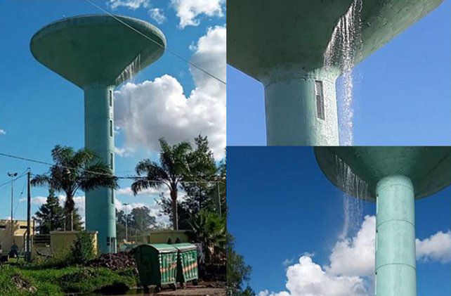 El agua del tanque no está en contacto con el cemento, ya que el hongo tiene un revestimiento interno de fibra de vidrio y resina. “Es como una enorme pileta interna”, explicó el directivo. Lo que ocurre es que la grieta fue tan grande que terminó averiando también la malla, lo que dejó fluir una enorme cantidad de agua. Las imágenes, impactantes, se viralizaron y circularon por toda la región.