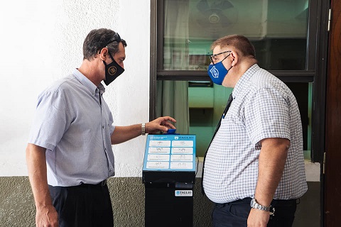 Oportunamente se hará lo propio con las Escuelas Técnica N° 291, N° 600 y N° 262, haciendo una entrega total de 5 sanitizantes.