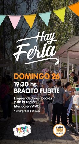 La Municipalidad de Armstrong invita a visitar una nueva jornada de la Feria Sabores y Colores Locales que se realizará el domingo 26 de enero desde las 19:30hs en el paseo artesanal del parque Bracito Fuerte.
