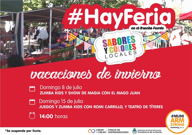 La Municipalidad de Armstrong invita a toda la familia, especialmente a los niños, a participar de las ferias de Sabores y Colores Locales que se realizarán los domingos 8 y 15 de julio desde las 14 hs., en vacaciones de invierno.
