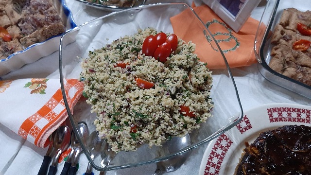 cebada perlada, quínoa, soja texturizada, mijo. Berenjenas a la parmesana, empanadas con harina