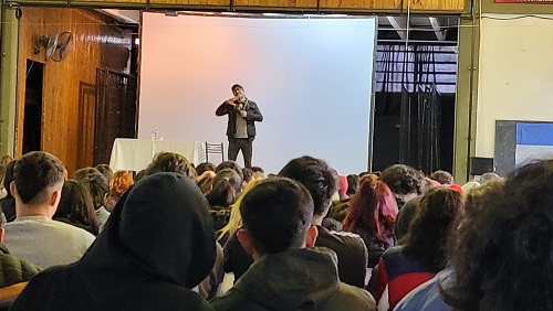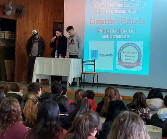 En una charla organizada por el Centro de Estudiantes AFA, de la Escuela N° 33 Dr. Mariano Moreno, el actor relató su experiencia con la cocaína ante los estudiantes del nivel secundario, alumnos de 6to y 7mo grado y docentes de dicha institución.