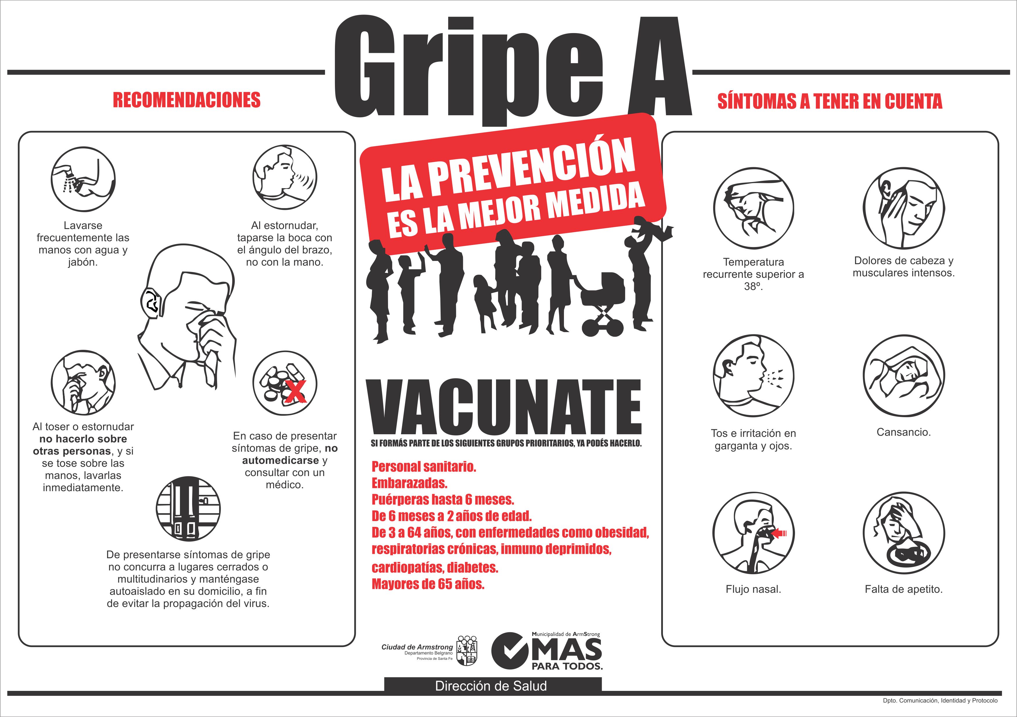 La vacunación puede realizarse en cualquier época del año. El contagio de la enfermedad puede darse a través de vía aérea y por contacto. Los síntomas son: más de 38º de fiebre repentina, tos, dolor de garganta, fatiga, decaimiento, vómitos y diarrea. Se recomienda no automedicarse.