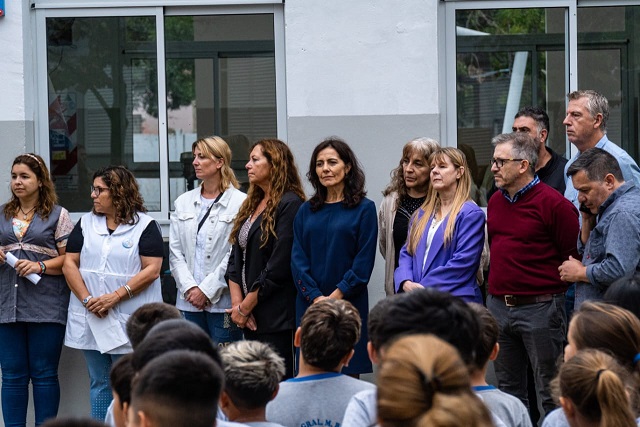 Luisina Duca, la directora de la Escuela N° 600 Marita Machuca, integrantes del gabinete local,