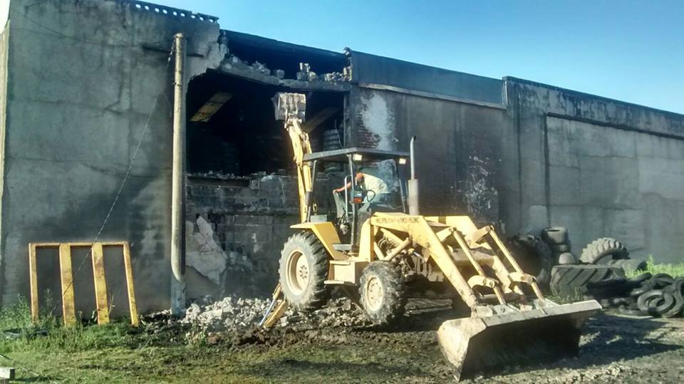 En la mañana de hoy, una máquina trabajaba para derrumbar la pared dañada por el fuego.