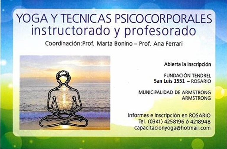 La Municipalidad de Armstrong a través de la Secretaría de Educación, Cultura y Deporte informa que dará inicio a los cursos de Instructorado y Profesorado de Yoga y Técnicas Psicocorporales, ambos a cargo de las profesoras Marta Bonino y Ana Ferrari.