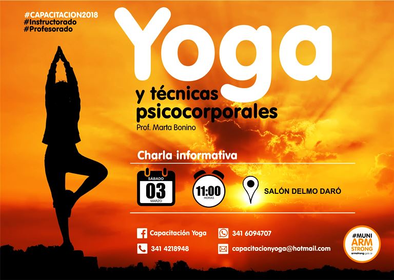 La Municipalidad de Armstrong a través de la Secretaría de Educación, Cultura y Deporte informa que dará inicio a los cursos de Instructorado y Profesorado de Yoga y Técnicas Psicocorporales, ambos a cargo de las profesoras Marta Bonino y Ana Ferrari.