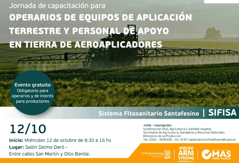 La Municipalidad de Armstrong junto al Ministerio de la Producción de la Provincia de Santa Fe invitan a la jornada de capacitación para operarios de equipos de aplicación terrestre de agroquímicos y personal de apoyo en tierra de aeroaplicadores.