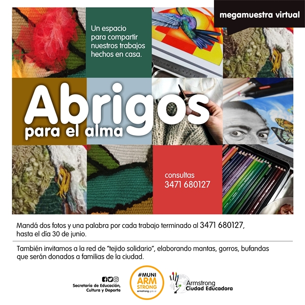 Desde la Secretaría de Educación, Cultura y Deporte de la Municipalidad de Armstrong proponemos un espacio para comunicarnos, para compartir nuestros trabajos, prendas, dibujos, esculturas.