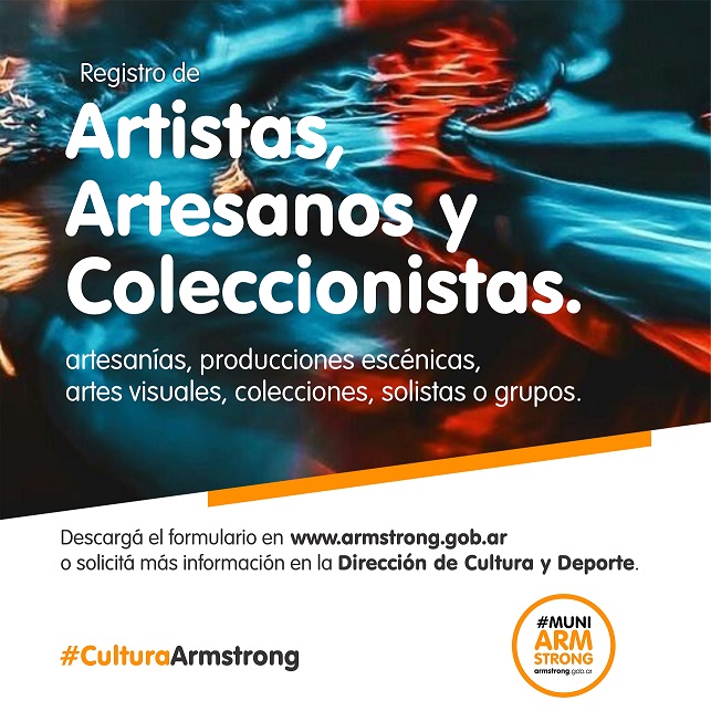 La Municipalidad de Armstrong mediante la Dirección de Cultura y Deporte invita a los interesados de todas las edades a inscribirse en el registro de artistas, artesanos y coleccionistas con el objetivo de confeccionar un padrón y así convocarlos a participar de distintos eventos.