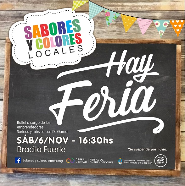 La Municipalidad de Armstrong invita a participar de una nueva jornada de la feria Sabores y Colores Locales que, en este caso, se realizará el sábado 6 de noviembre desde las 16:30 hs. en el parque Bracito Fuerte.