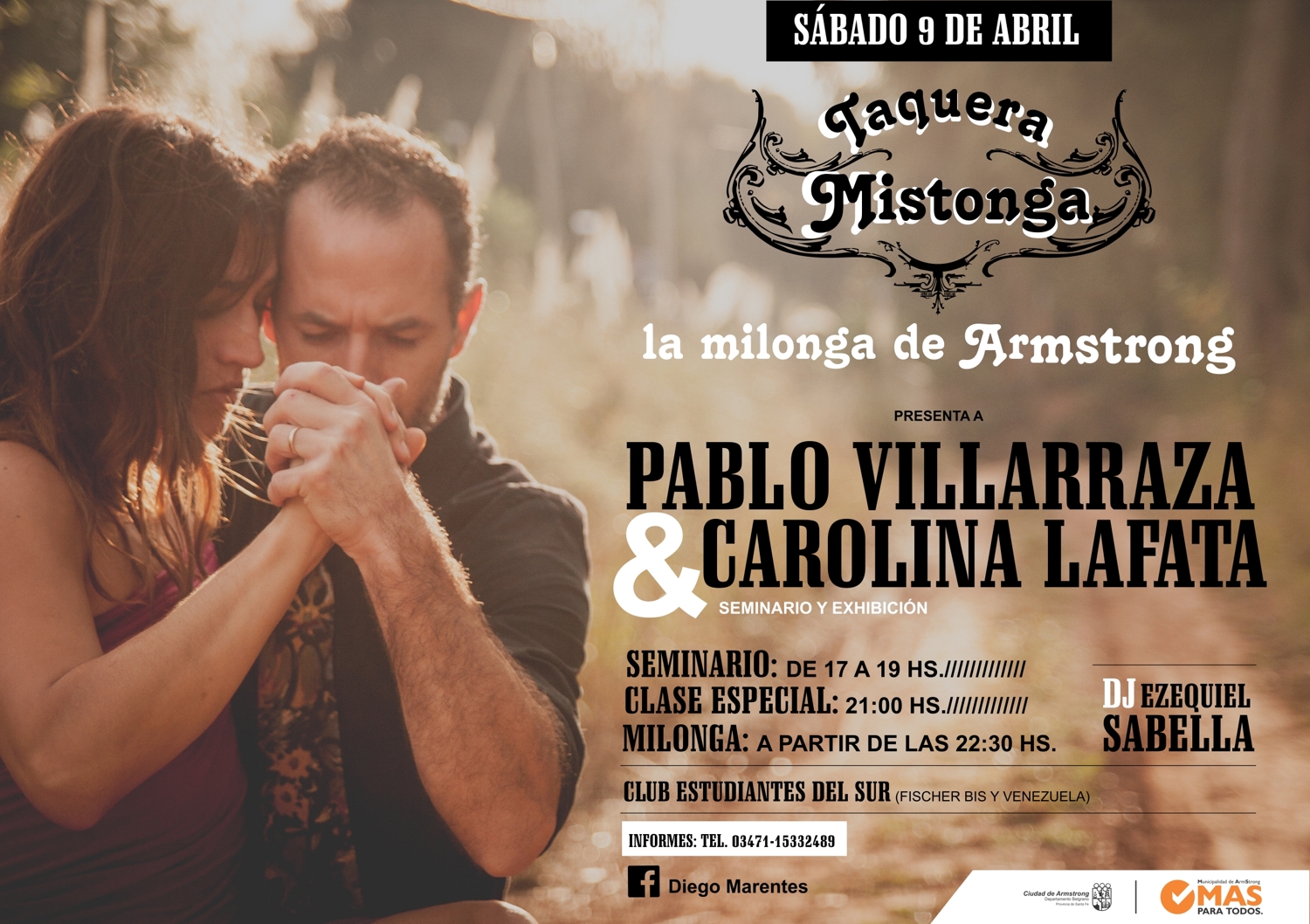 La Municipalidad de Armstrong invita a participar de una jornada destinada al tango y la milonga, que se desarrollará el sábado 9 de abril, organizada por Taquera Mistonga, la milonga de nuestra ciudad, encabezada por el profesor Diego Marentes.