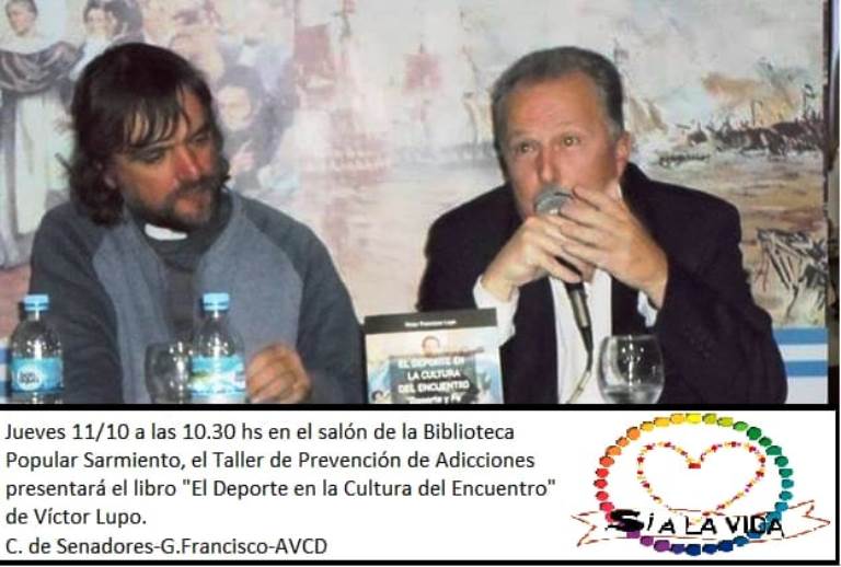 El próximo Jueves 10 de noviembre a las 10,30hs en el Salón de la Biblioteca Popular Sarmiento, el Taller de Prevención de Adicciones, presentara el libro “El Deporte en la Cultura del Encuentro”. De Víctor Lupo. Toda la comunidad de Armstrong esta invitada a dicha presentación.