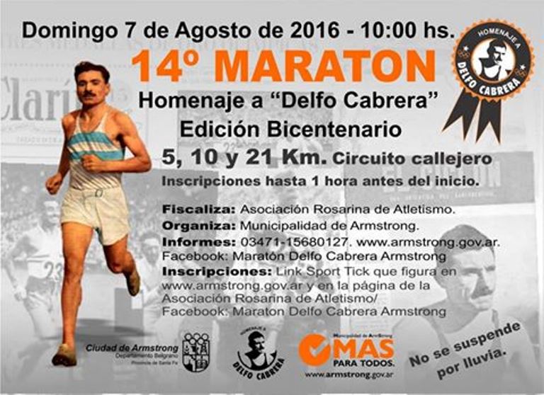 Para recabar más información podrán comunicarse con la Secretaría mencionada de lunes a viernes de 7 a 13 hs., teléfonos 03471-461204 / 461326 / 461316 interno 107, ó escribir a maratondelfocabrera@armstrong.gob.ar ó en Facebook: Maratón Delfo Cabrera Armstrong.