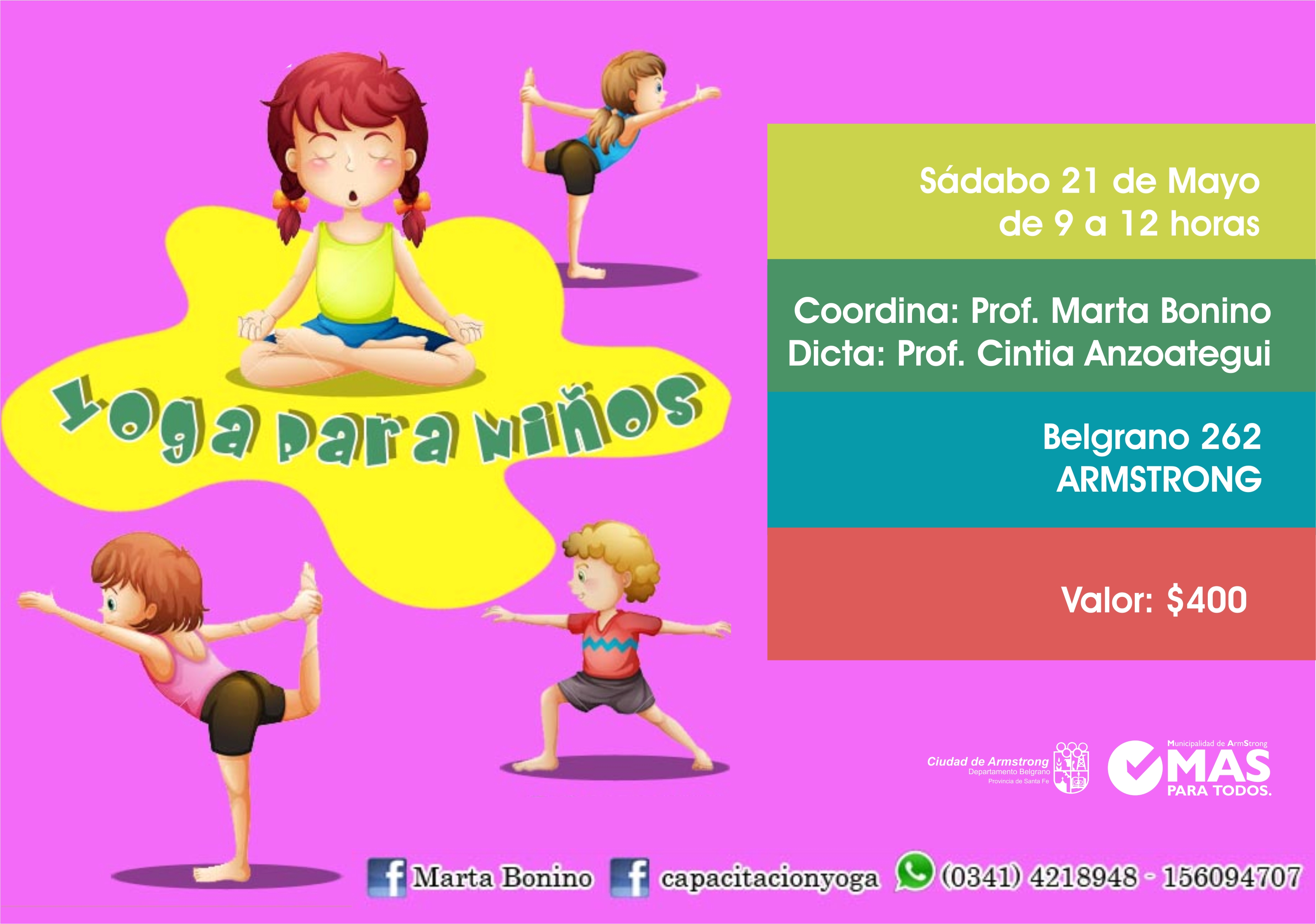 La Municipalidad de Armstrong a través de la Secretaría de Educación, Cultura y Deporte invita al seminario que tiene como objetivo brindar información para Instructores/Profesores de Yoga, maestros o personas interesadas en trabajar con niños y trasmitirles conocimientos y herramientas provenientes de esta disciplina milenaria.