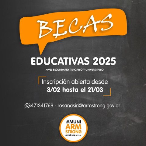 La Municipalidad de Armstrong a través de la Secretaría de Educación y Desarrollo Integral informa que el día 3 de febrero se abre la inscripción de aspirantes a las becas educativas correspondientes al ciclo escolar 2025.