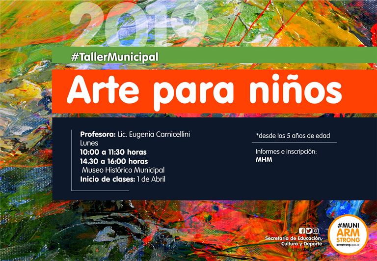 La Municipalidad de Armstrong invita a niños desde los 5 años de edad a participar del taller de arte que se desarrollará en el Museo Histórico Municipal (MHM), los días lunes de 10 a 11:30 hs. y de 14:30 a 16 hs., a partir del 1 de abril.