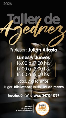 Municipalidad de Armstrong invita al taller municipal de ajedrez a cargo del Prof. Julián