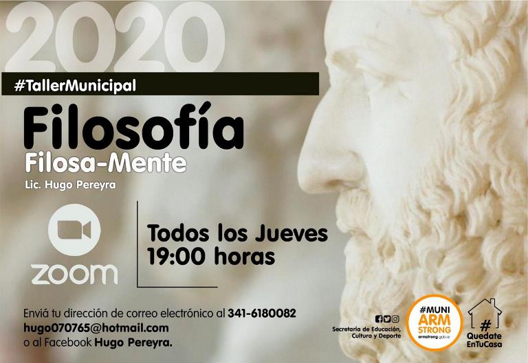 La Municipalidad de Armstrong mediante la Secretaría de Educación, Cultura y Deporte informa que se inició el taller de Filosofía mediante encuentros virtuales, a través de la plataforma Zoom.