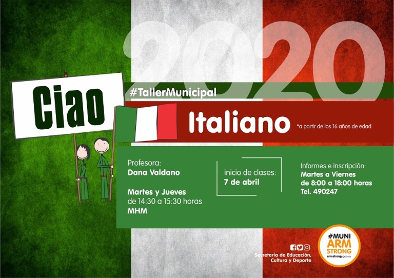 La Municipalidad de Armstrong invita a los interesados a participar del taller de idioma italiano que se ofrecerá a partir del día martes 7 de abril en el Museo Histórico Municipal.