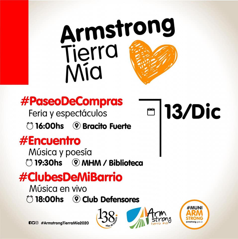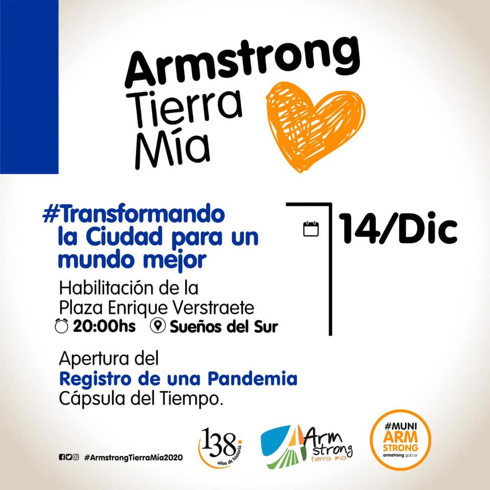 Si bien es un año atípico, las autoridades de la Municipalidad de Armstrong han decidido organizar un cumpleaños diferente y poder ofrecer un festejo distinto teniendo presente que el objetivo de “Armstrong Tierra Mía” es juntarnos, conocernos, compartir con el vecino, mirarnos, integrarnos y pensar una ciudad mejor para todos, celebrando la historia.