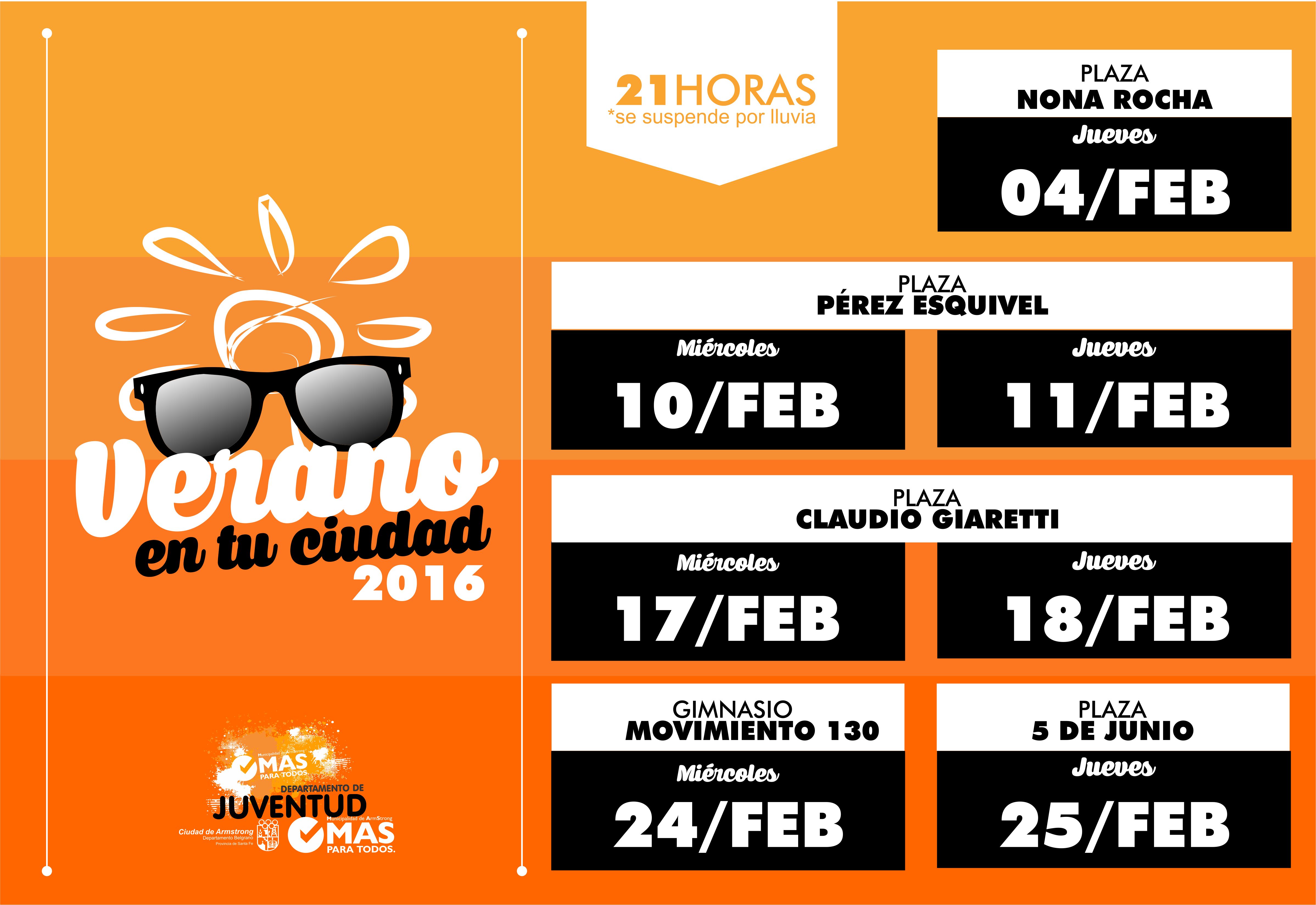 Es por eso que para este año 2016 se presentan diferentes y variadas propuestas para grandes y chicos que se desarrollarán en distintos espacios públicos de nuestra ciudad, llegando a cada barrio y donde los vecinos podrán acercarse llevando equipos de mates, conservadoras con bebidas frescas y reposeras.