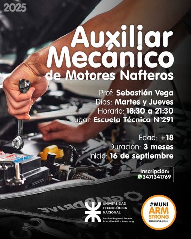 Armstrong pone a disposición un nuevo curso de capacitación laboral: Auxiliar Mecánico de motores